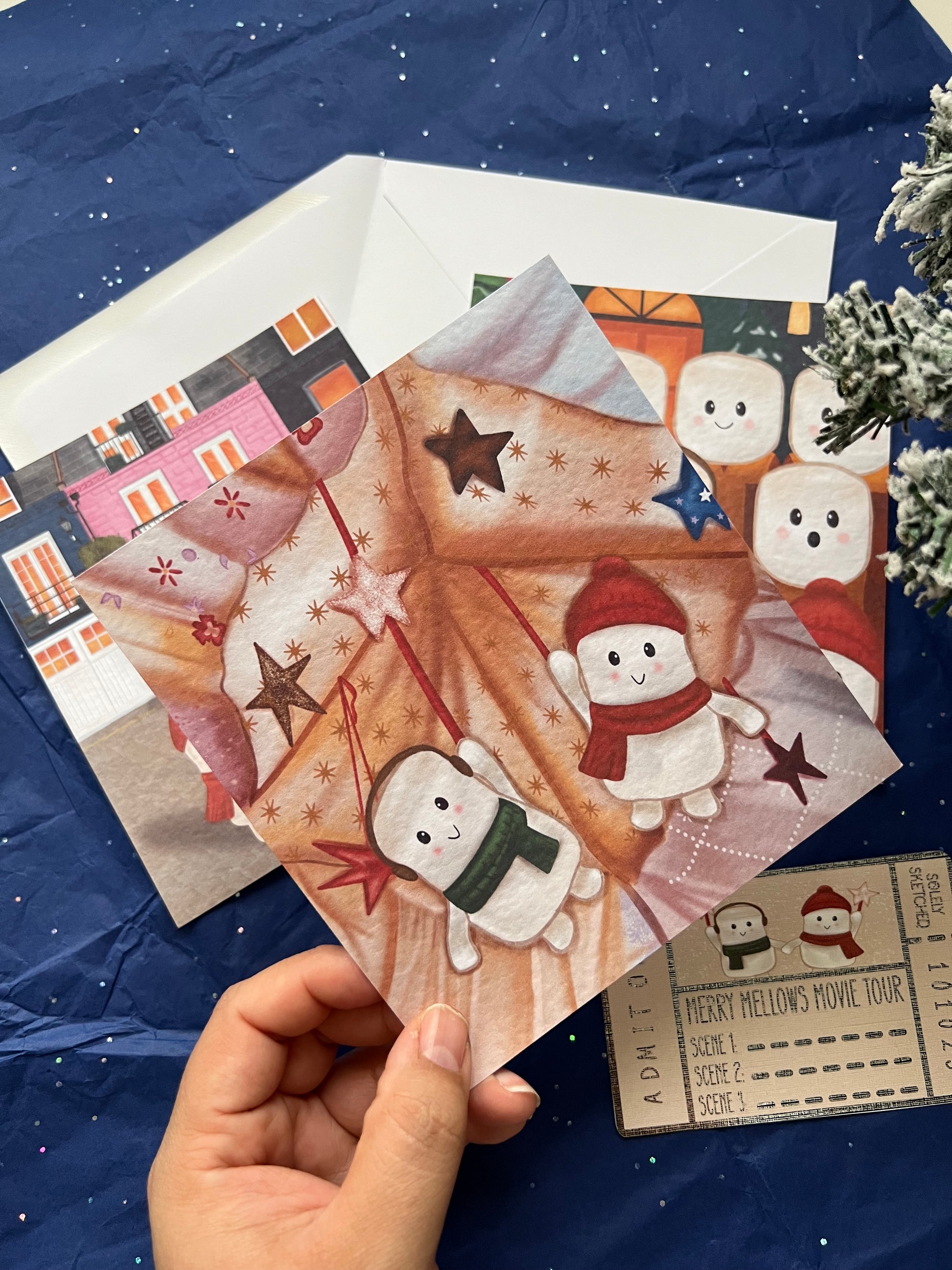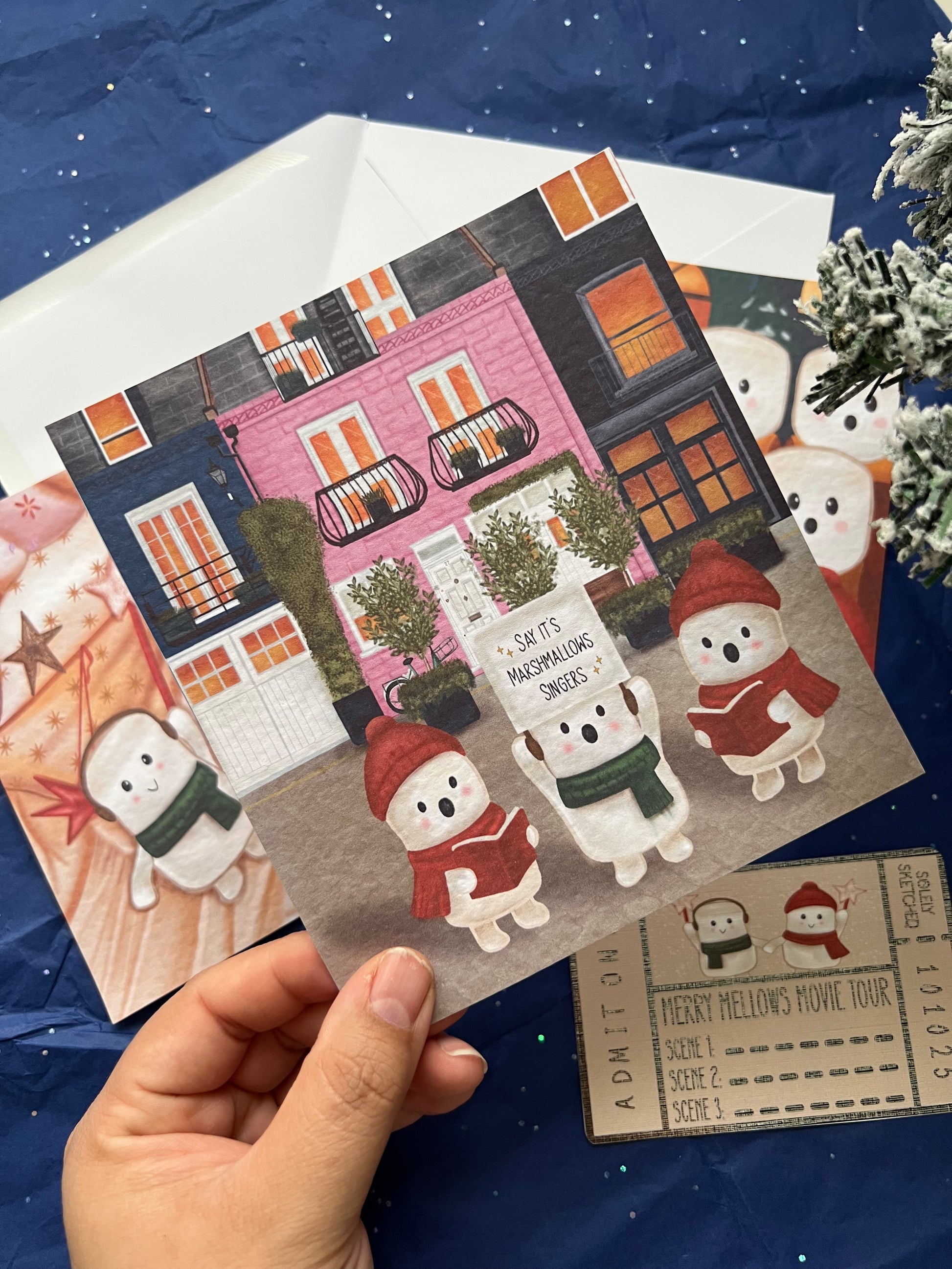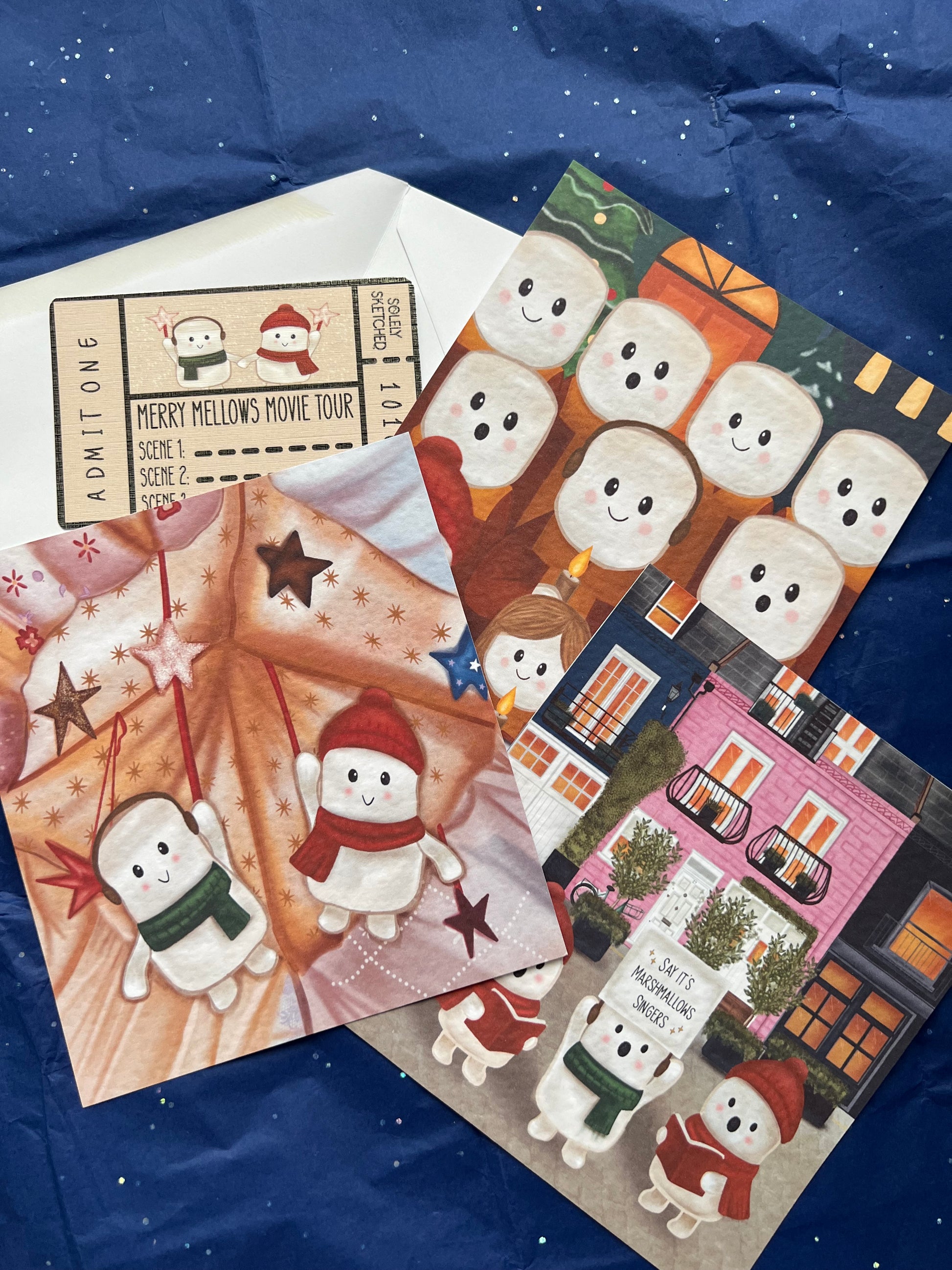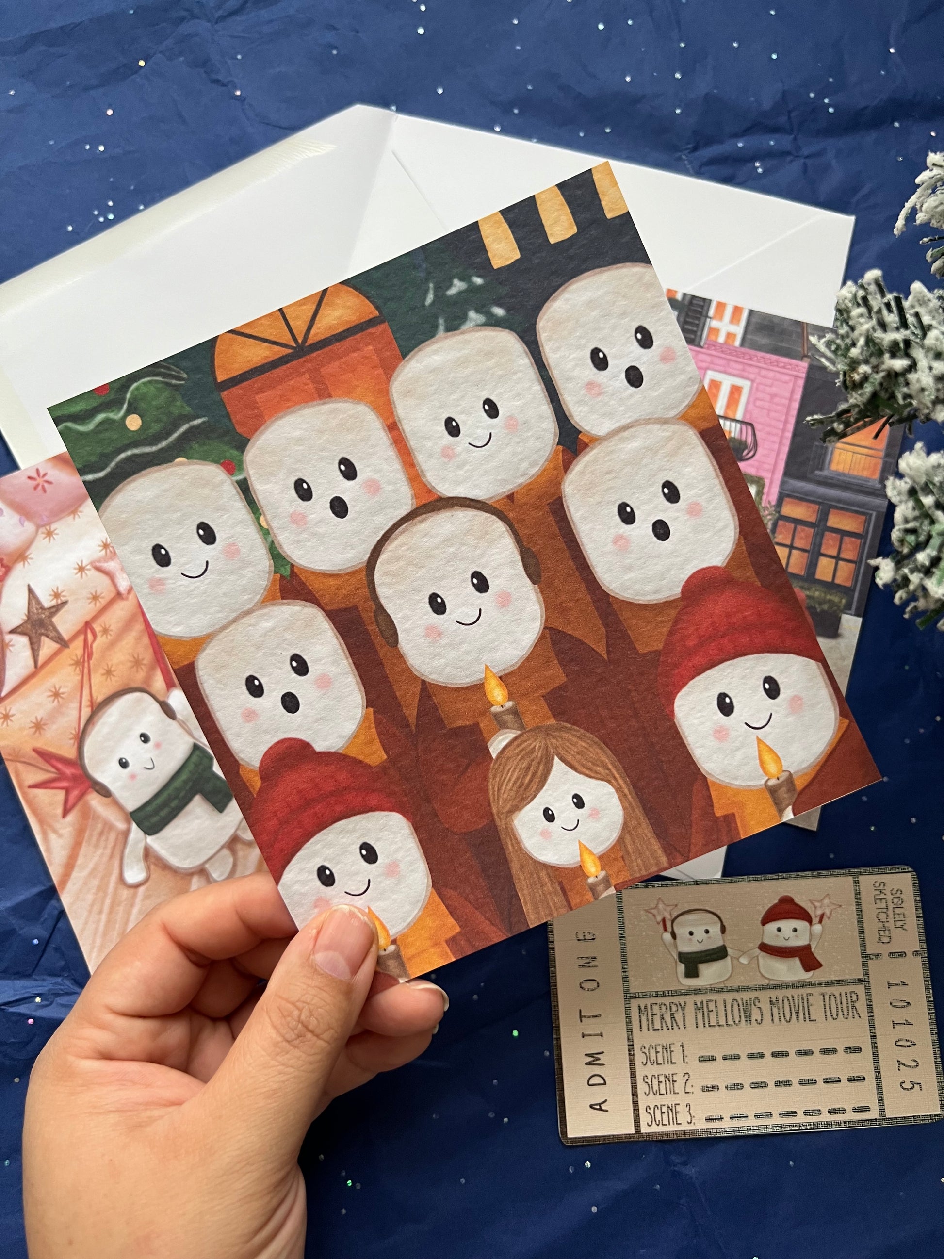 Featuring marshmallow characters exploring scenes inspired by classic Christmas movies. - 1 exclusive “Merry Mellow’s Movie Tour” ticket (A fun collectible insert that completes the tour experience.)